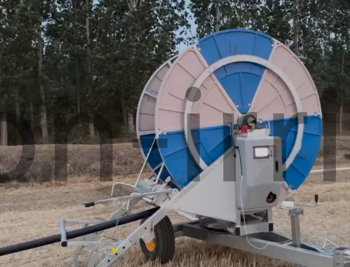JP/D series hose reel sprinkler irrigation system, driven by electric. It is an irrigation equipment with its 1.6Mpa pressure PE pipe winded around the winch, and with the chassis and frame are crafted from outstanding corrosion resistance and high strength 304 stainless and treated with the hot-dip galvanizing process, specially designed for efficient agricultural farming irrigation. The power of the JP/D electric reel sprinkler uses a DC brush-less motor with infinite speed regulation, which has a wide speed range, high torque, high efficiency, and precise control. And the motor is directly connected to the gearbox for transmission, avoiding the traditional method of transmitting torque through a belt drive, which improves the overall transmission efficiency of the machine. It is widely used in large and medium scale farmland operation irrigation, garden, urban green space, fruits and vegetables, tea, forage, tobacco, sugar cane, and power plants, wharf, construction sites, coal dust removal and other fields.